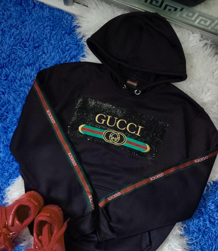 Шикарное худи Gucci,ого вышивка,стразовое полотно,размер S/M,стан идеальное.