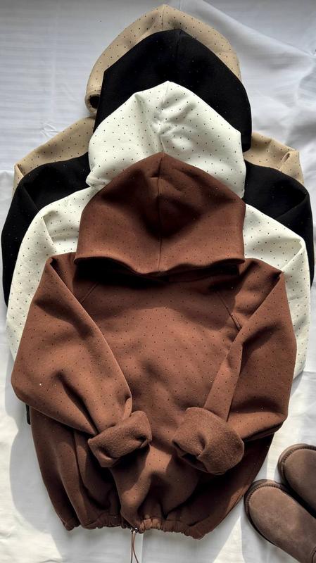 Худи #79/278 Ткань трехнитка на флисе «Пенье» Цвет черный, молочный, бежевый, шоколадный Размер 42-44,46-48,50-52 Худи с двойным капюшоном, с карманами, рукав манжет на резинке, затягивается на резинку и фиксатор (можно регулировать ширину ) Ткань не скатывается, не линяет