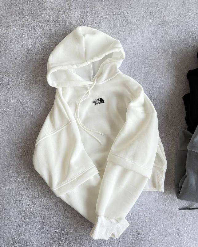 Худи ▪️Мод: 0234 ▪️Ткань: качественная трехнить на флисе + манжеты измельченная❗️ ▪️Размеры: 42-46 (универсал) ▪️Цвета: черный, серый, молоко Лого - качественный накат