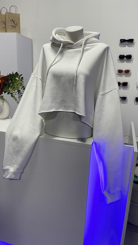 Новеньке білосніжне худі вільного крою з необробленим низом Утеплене на флісі Розмір М