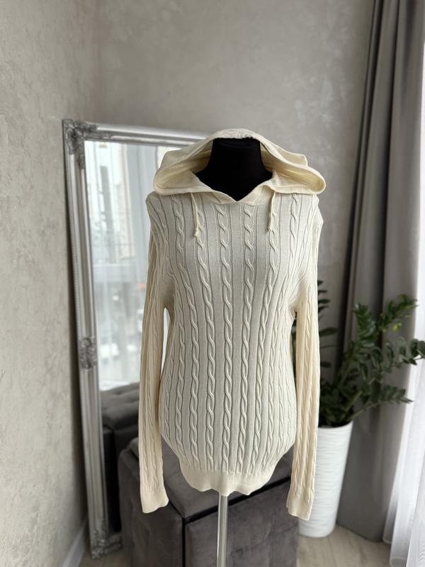 Худі в красивому молочному кольорі з косами і капюшоном від дорогого бренду FILIPPO DE LAURENTIS 100% котон Стан ідеальний✨🔥 Розмір М Заміри Плечі піб 50 см Підпахвами піб 53 см Рукав від плеча 66 см Довжина 66 см