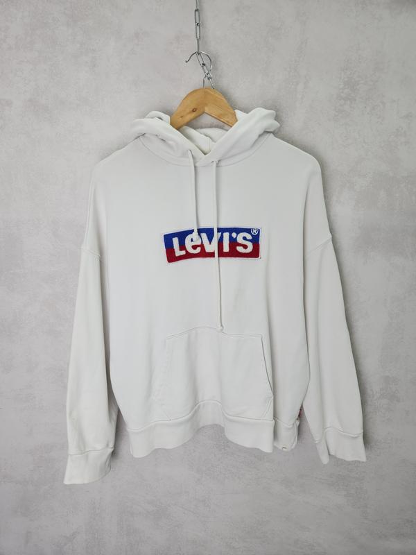 Стильное оверсайз худи от бренда Levis с фирменным логотипом на груди Состояние отличное Размер XS по бирке Полуобхват груди 61 Длина 63 Плечи 63 Длина рукава 48 Ширина 58