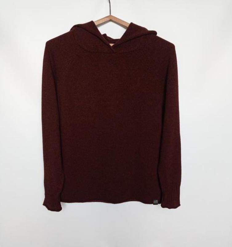 Худи из шерсти descente Мужской худи из шерсти (боковая бирочка срезана но шерсть 100%, мягкий приятный на ощупь, цвет коричневый (фото не передало), рукав внизу с прорезью на пальчик, состояние идеальное. Пог. 54, рукав с начала горловины реглан 78, длина 70.