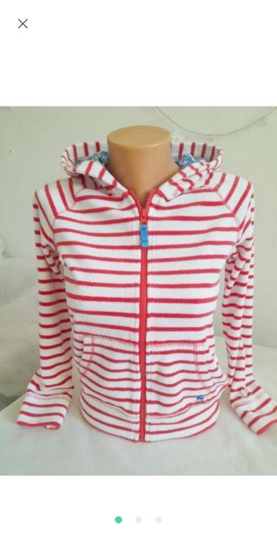 Худи с капюшоном, в полоску Застежка на молнию, с карманами В составе ткани 84% коттон Замеры: длина- 56, рукав + плечо- 64, пог- 44 ( прямой крой)