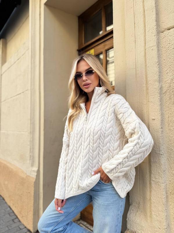 Стиль и комфорт в одном образе! Трикотажный свитер с объемной вязкой «косичка» 🤍 Модель с замком-молнией и воротником-стойкой - выглядит дорого и согревает в прохладные дни Производитель: Турция Размер: универсальный Тканина: 80% акрил, 20% вовна Цвет: молочный, серый, Замеры: Длина: 59см Обьем грудей: 130см Длина рукава от шеи: 68см №3009