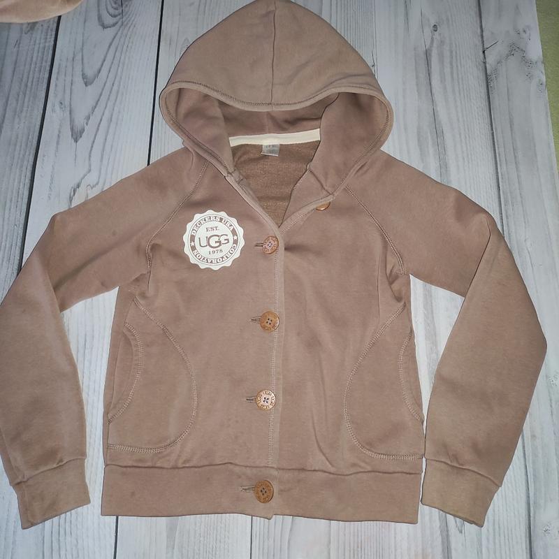 Теплая кофта,толстовка UGG.есть нюансы - есть трещинки на накате логотипа и потертости на манжетах ,те места,что к бедрам (учтено в цене,показала на фото) .с изнанки байковая основа,застежка на пуговицах.размер М,но лучше на на S или небольшую M,т к не объемная.состав не видно,но примерно хлопок или есть еще немного полиэстер. Смотрите другие мои объявления
