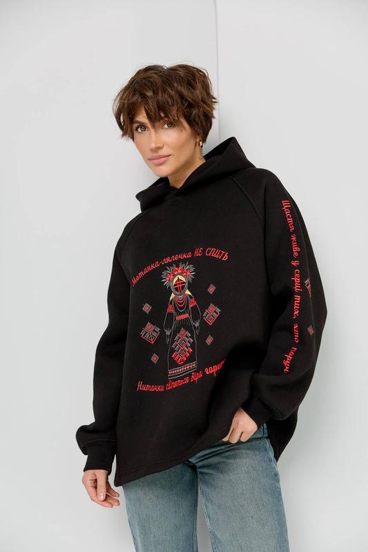 🔥Новинка – теплый худи в этно стиле. 👍отличное качество ткани (турецкая трехнить с начесом), вышивка высокоточным оборудованием. Надпись вышивки "Мотанка-куколка не спит, ниточки светятся Вера горит", на рукаве "Счастье живет в сердце тех, кто рядом". По низу регулируется ризиночкой на застежках. 👆Размеры S/M и L/XL, до 56 размера. Заміри надаю.