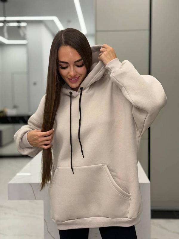 Фото вживу Худі ▪️Модель: 402 ▪Тканина: Дорога Турецька трьохнитка «ПІНЬЄ»( м'яка, тепла, не кашлатиться, не линяє), манжет на рукавах та внизу із кашкорсе . ▪️Колір: беж ▪️Розмір: 42-46 універсальнмй __Подовжене худі з великою кишенею спереду, пошитий з якісної тканини та відмінний накат. Ціна 980 грн