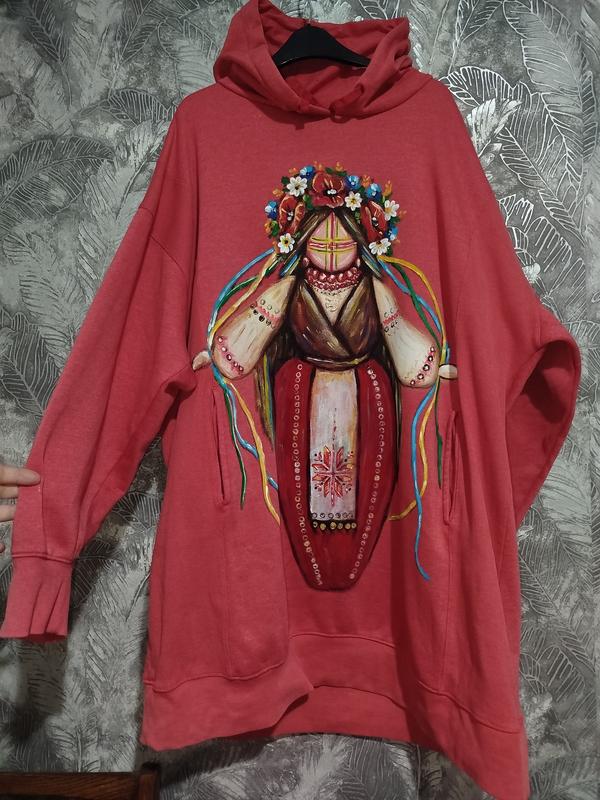 В наличии худи с Мотанкой,коттоновый, утепленный байкой, удлиненный, по бокам карманчики, свободный рукавчик, роспись получился нежный, хорошенький, выполненный с любовью, будет радовать и оберегать Вас🥰 замеры: ог 160 см, об 168 см, длина 92см