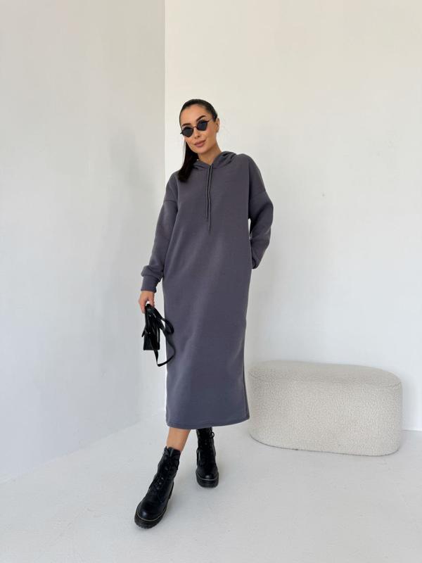Сукня Сукня з капюшоном та кишенями в стилі OVERSIZE ♥️ Тепла, м'яка та приємна до тіла Кольори 🔥 Якість 👍 Ціна 🔥 ➡️Тканина: тринитка на флісі ➡️Розмірний ряд: 1(42/46) 2(48/52) ➡️Кольори: графіт, чорний, мокко