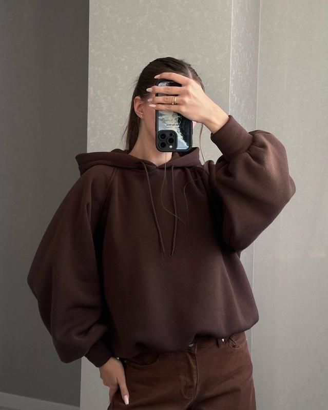 В наявності у кількості всі кольори🔥 Фото Реал🤎 Хіт продажу🔝 Худі 💔 ▪️Мод: 761/121 ▪️Розмір: 42-48 oversize ▪️Тканина: трьохнитка на флісі ▪️Колір: чорний, рожевий, молоко, шоколад, меланж Базовий, тепленький худі oversize, який представлений у 5-ти найактуальніших кольорах😍 Ідеальний крій, мʼяка приємна до тіла тканина❣️ 📌Заміри 42-48: Довжина по спинці - 58 см Довжина спереду - 52 см Ширина - 65 см Рукав - 69 см