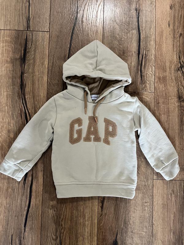 Оригінальне худі babyGAP. Розмір: 2–3 роки (98 см). Колір: світло-бежевий / молочний. Стан дуже хороший, без плям і дефектів. М’яке, приємне до тіла, утеплене всередині. Капюшон, якісна вишивка логотипу GAP.