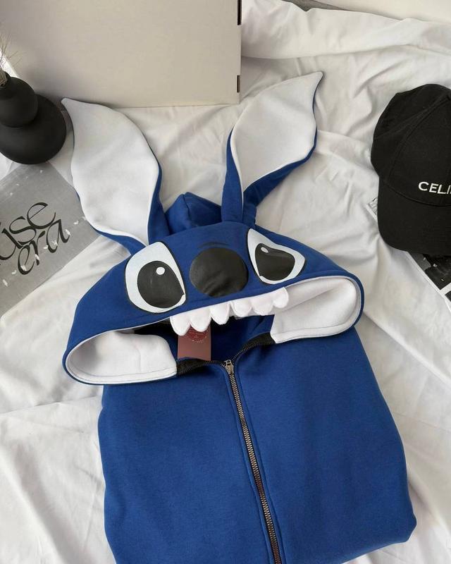 Зип - худи Код 218 Ткань: трехнитка на флисе Размер: 42-46 оверсайз Кольори: електрик 💵Цена 779 грн 🔥 Wow! Наш крутой худи с ушками в виде любимца Стча. В оверсайз стиле удлинен. На молнии. Качественная накатка. Теплая приятная ткань.