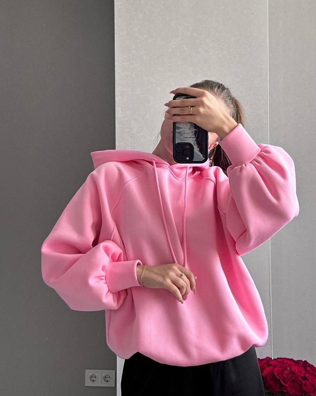 Худі🥰 Мод: 856-761 Розмір: 42-48 Тканина: трьохнитка на флісі Колір: рожевий, молоко, меланж, чорний, шоколад Ціна- 739 грн🔥 Довжина по спинці - 58 см Довжина спереду - 52 см Ширина - 65 см Рукав - 69 см