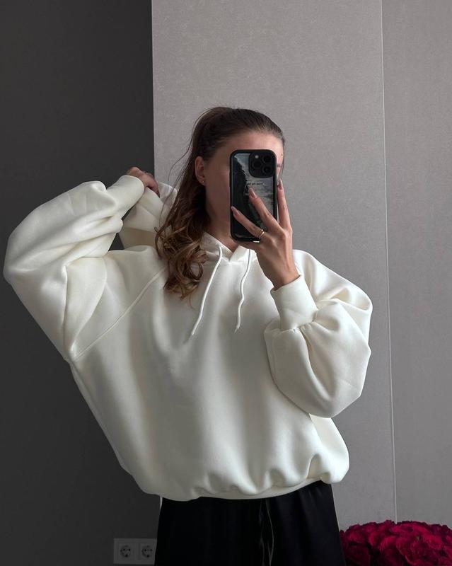 Худі🥰 Мод: 856-761 Розмір: 42-48 Тканина: трьохнитка на флісі Колір: рожевий, молоко, меланж, чорний, шоколад Ціна- 739 грн🔥 Довжина по спинці - 58 см Довжина спереду - 52 см Ширина - 65 см Рукав - 69 см