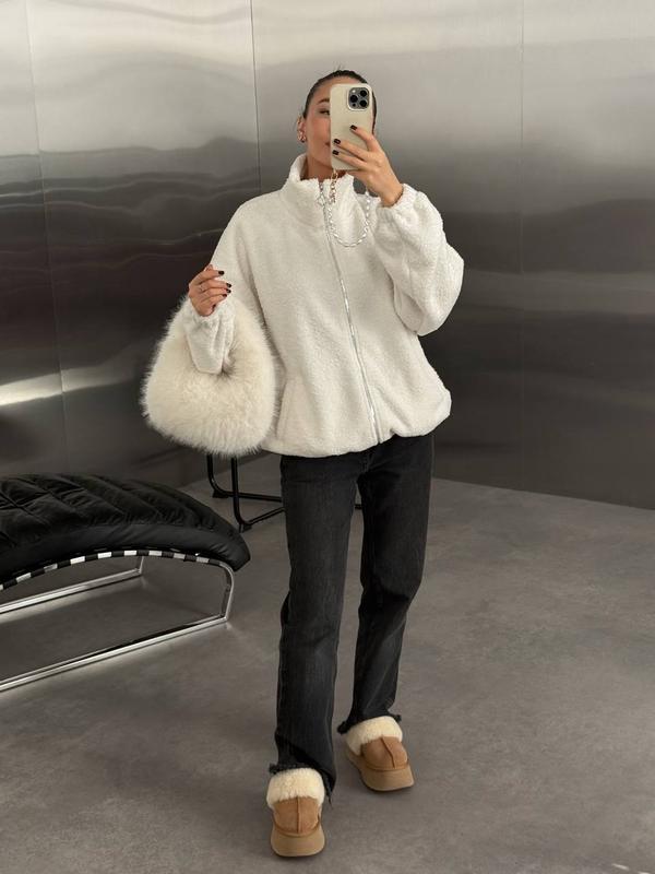 Супер кофта утеплена на флисе Теплая, универсальная, идеальная для ежедневного использования 🔥 ОТПРАВЛЕНИЕ ПРОСТВИЯМ 2-5диб 🌸.по предоплате 200 грн перед заказом уточняйте наличие и условия 💕 🎏Цвета: молочный, черный, темно-серый ⚡️Металлическая молния⚡️ ➡️Размер: oversize (42-48) ➡️Мод. 1886 ➡️Ткань: Букле на флисе⛄️ Замеры Длина кофты 68см рисантные глубокие карманы ОГ до 115см
