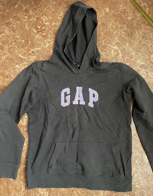 Стильний худі Gap у графітовому кольорі з лавандовим лого. Пропоную вашій увазі базовий елемент гардероба — оригінальну жіночу кофту (худі) від відомого бренду Gap. Дизайн: Класичне впізнаване лого Gap виконане у ніжному лавандовому кольорі, що круто контрастує з глибоким графітовим (темно-сірим) фоном.