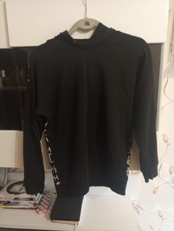 Черный худи для женщин с капюшоном, объем груди-110 см, длина изделия-60 см, длина рукава-64 см.