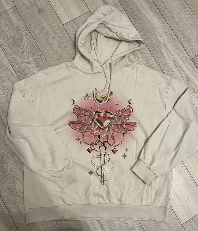 білий жіночий худі з принтом б/у має декілька плям розмір м/л