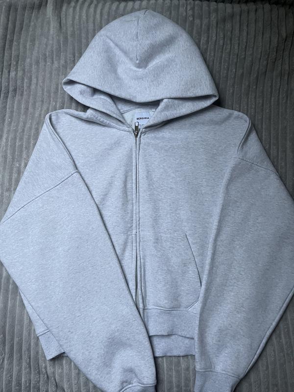 світло сіре зіп худі bershka, в ідеальному стані, розмір S