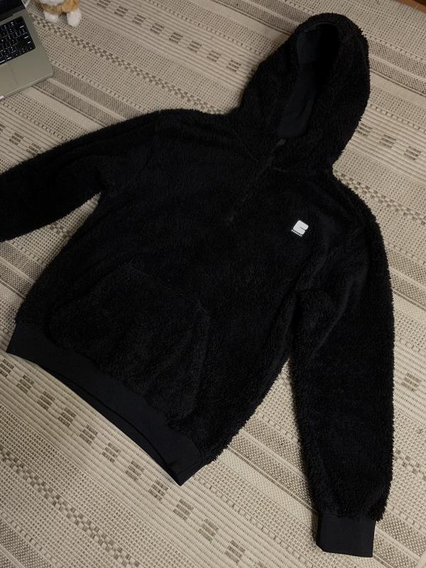 Чорне тепле теді худі🐻Худі може бути як унісекс модель , капішон , горловина защіпається на замок , оздоблений манжетами , по середині кишеня яка защіпається на замки ▪️Стан хороший ▪️Бренд H&M ▪️Склад 100% поліестер ▪️Розмір Хс може бути до Л 📏Довжина 63 📏Довдина рукава 58 📏Груди 54 📏Талія 53 📏Манжет 45 🚚Відправка Укр,Нп