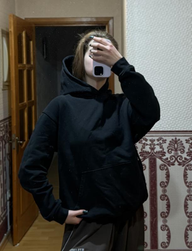 Стан нового, якісна тканина двухнитка із середини, яка не кашлатиться, малюнок не тріскається, український бренд - husll, насичений чорний колір, оверсайз фасон, великий капюшон який тримає форму Розмір: оверсайз Стан: нового