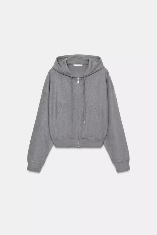 Худі з круглим вирізом та регульованим капюшоном на шнурках. Довгі рукави. Передні кишені. Застібка-блискавка спереду. Розмір S