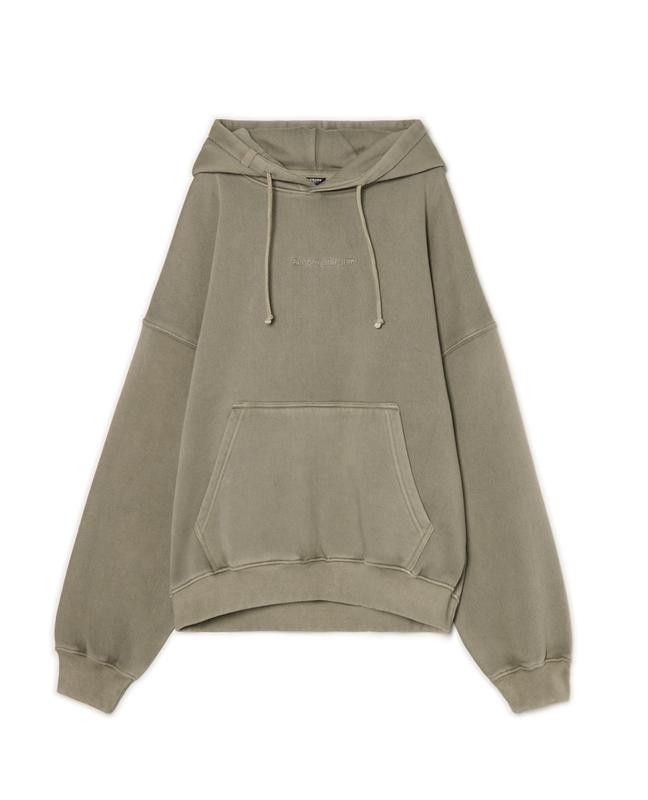 . вільний крій • каптур на шнурку • злегка опущена лінія плечей • кишеня-кенгуру спереду • низ та манжети вʼязані гумкою • невелика вишивка спереду