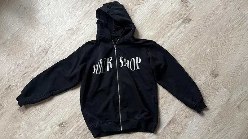 Продам стильну чорну худі на блискавці з принтом YOUR SHOP спереду та великим принтом на спині.Дуже круто виглядає ✅ Стан: • дуже хороший, трішки ковтунці на рукавах • без дірок, плям і потертостей • блискавка працює ідеально 📌 Опис: • колір: чорний • з капюшоном • на блискавці • трикотаж тканина • принт не потріскався 📦 Відправка: Нова пошта / Укрпошта 💬 Пишіть — відповім швидко!