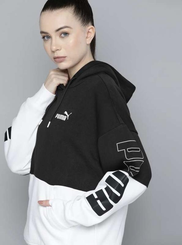 Худі PUMA (оригінал) Актуальна модель з сучасної колекції PUMA — стильне двоколірне худі у чорно-білій гамі з фірмовим логотипом, на флісі. Лаконічний дизайн легко поєднується зі спортивним та casual-образом. 🔹 Стан: бездоганний, як новий 🔹 Розмір: L 🔹 Матеріал: м’який, приємний до тіла, добре тримає форму 🔹 Особливості: капюшон зі шнурками, зручна кишеня-кенгуру, оригінальні принти на рукавах