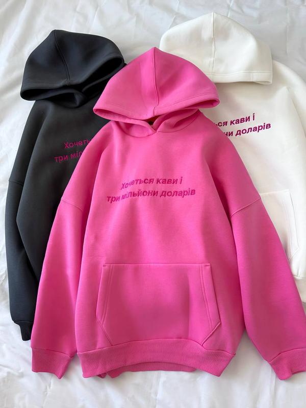 Ткань:Турецкая трехнить пенье (не кашлатится и не линяет❗️) манжеты кашкорсе Размер: S/L универсал Цвета: розовый, графит, молоко Худи с вышивкой из качественной натуральной трехнитки с начесом. Мягкое, теплое, с глубоким капюшоном и манжетами из кашкорсе. Фото реал