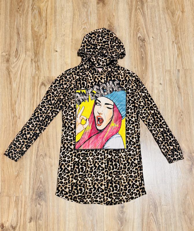 Жіноче худі-туніка , леопардовий принт з яскравим малюнком , розмір s. Тільки безпечна доставка чи передплата