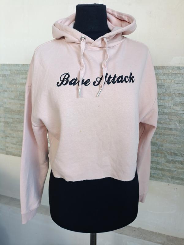 груди 57, рукави 70 від горловини довжина виробу 42. Укорочене худі з довгими рукавами, заниженою лінією плеча, капюшоном на кулісці та ребристою трикотажною гумкою внизу та на манжетах.