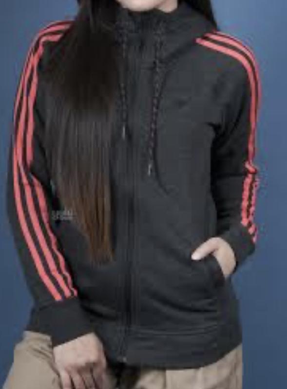 Дуже красиве спортивне зіп худі від одного з найкращих брендів спортивного одягу Adidas. Виконане в сірому кольорі. На грудях знаходиться фірмовий логотип. На рукавах розташовані лампаси в рожевому кольорі. Дуже класно виглядає на тілі. Чудово доповнить Ваш гардероб.