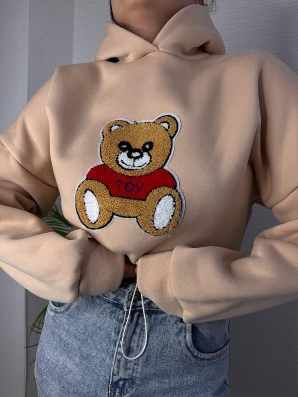 Фото реал ♥️Милые худи. Низ кофты регулируется стопой 🫶 Двойной капюшон Шикарного качества! Мод:7Е85LE ▪️Размер: 42-46 ПОГ-62 Длина -49 см ▪️Цвет:беж ▪️Ткань: качественная трехнить на флисе 💰Цена:700 грн