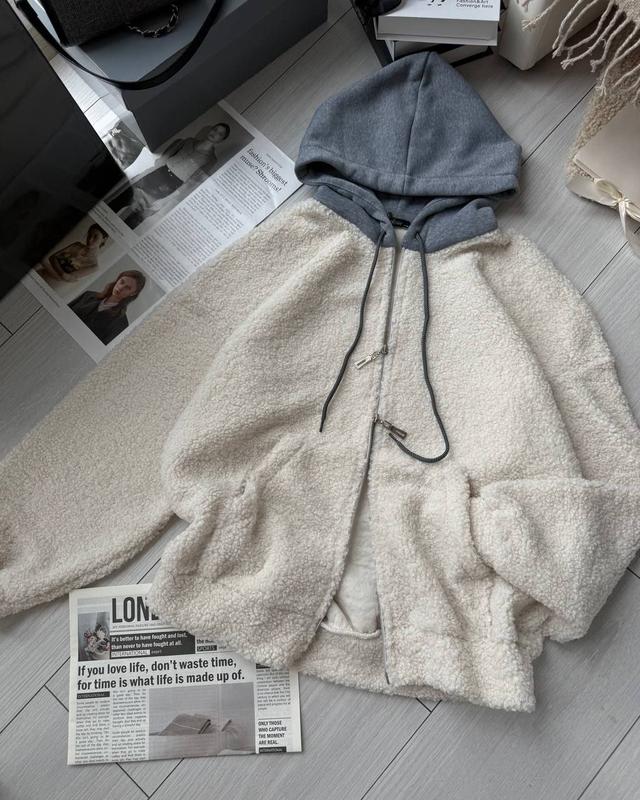 МА 21.02.6 🤍 Cozy mood on Твоя улюблена oversize теплинка 💫 Код: 4/ рнС15<29<33<208 • Тканина: Туреччина Тедді, капюшон трехнитка на флісі (подвійний) • Колір: молочний • Розмір: 42-46 one size Блискавка з двома бігунками ✨ Реал фото , відео #наложка