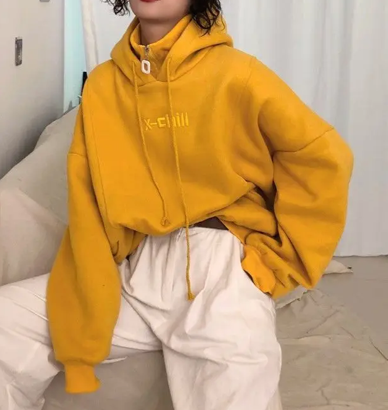 Худи желтого цвета с небольшой вышивкой, нестандартными карманами и молнией по горловине. Не толстое, без начеса. Смесь хлопка и полиэстера. Плечи 57 см, полуобъем груди 58 см, полуобъем талии 58 см, полуобъем бедер 58 см, длина 69 см, длина рукава 55 см. Наш 48-52 размер.