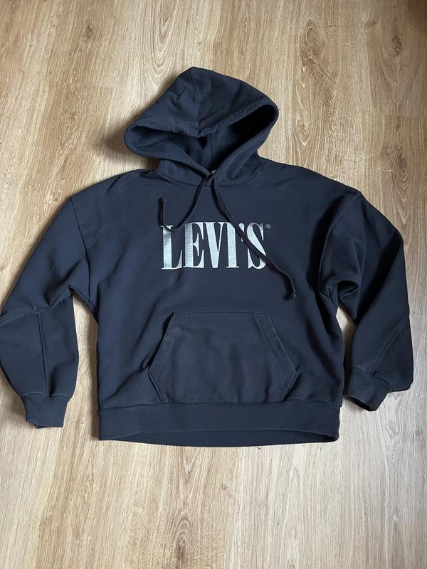 Чорне худі від Levis з великим написом на грудях. Оригінал . Стан гарний. Рукав зі спущеним плечем. Гарно дуже сідає.Тепле і комфортне. Розмір S,але можна і M Усі заміри на останньому фото.
