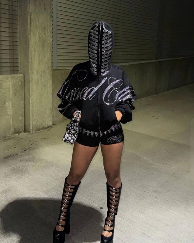 🖤 Трендовое худи со стразами 🖤 Цена : 700 грн Ткань : вискозная двунить Цвет: черный Размер: 42-46 ( универсальный) Эффектное черное худи, украшенное стразами, которые красиво переливаются при свете и создают яркий акцент в образе 🖤 Стильный дизайн в streetwear-направление идеально подходит для повседневной носки, вечерних выходов и фотосессий. Заказать можно в тг dddd7907