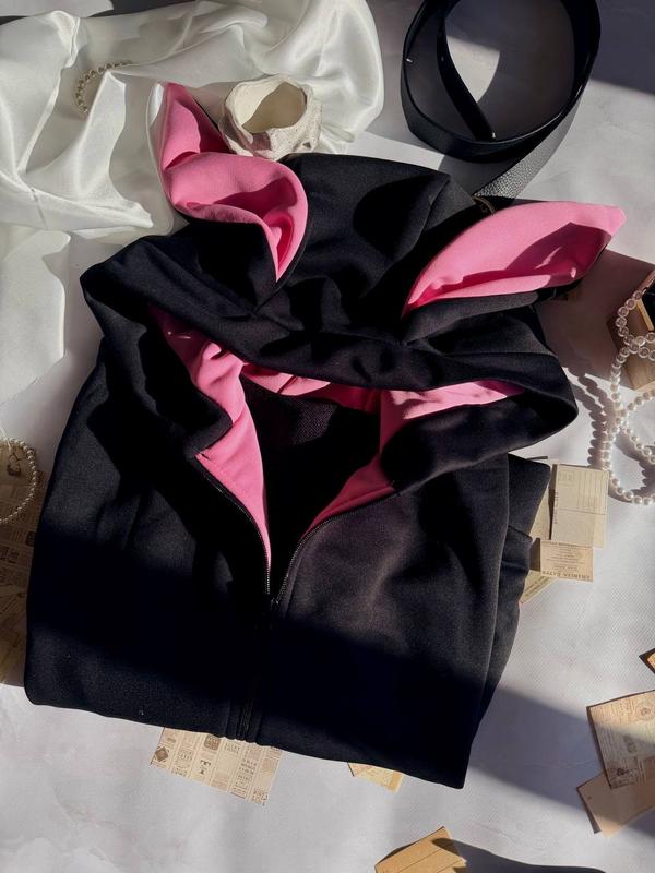 Женское худи Ткань: петля (Турция) Размеры: 42-46 (one size) Цвета: черный с розовым Фото реал Качественный пошив ❤️❤️ Оплата и доставка: Нова пошта - повна оплата на р/р Отправка 1-3 рабочие дни после оплаты Работаем:онок, Среда, четверг, суббота ❤️❤️ Есть обмен Обмен брака возможен только при выявлении недостатка в отделении новой почты и отказе от посылки