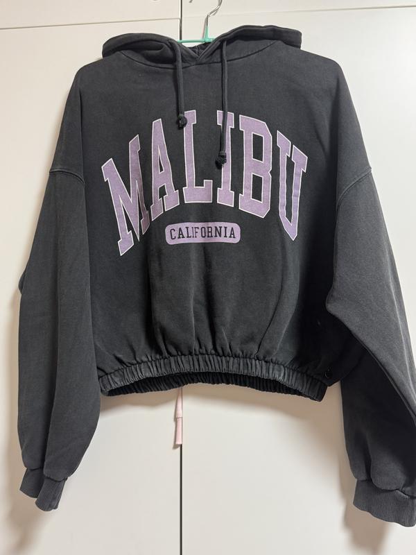 Укорочений худі колір графіт Pull&Bear! По бірці розмір L, підійде M ПОГ 60 Резинка в спокійному стані 35, тягнеться до 51 Д 49 🖤💜