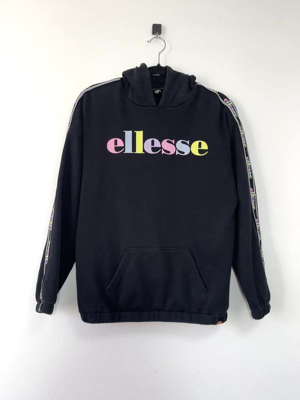 • Бренд: Ellesse • Фасон: оверсайз худі • Деталі: насичений чорний колір, напис на грудях в пастельних відтінках танампаси по довжині рукава, опущені плечі • Стан: відмінний • Розмір: підліткове худі на 13-14 років, підійде на жіночий S 📐Заміри: • Довжина по спині: 50 см • Груди (під пахвами): 52 см • Довжина рукава до горловини: 75 см