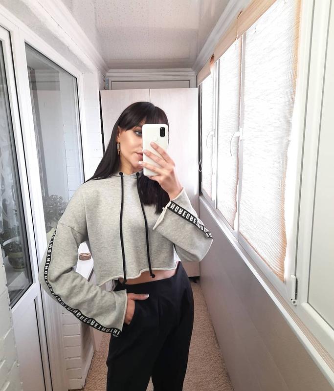 💜 Вкорочене худі з широкими рукавами 💜 Ідеальний стан 👍 💙 Склад: 100% котон. 💙 Розмір L, на М також підійде. Заміри: 🧡 пог - 57см; 🧡 довжина від плеча - 38см; 🧡 рукав від шиї - 75см; 🧡 ширина рукава - 18см.