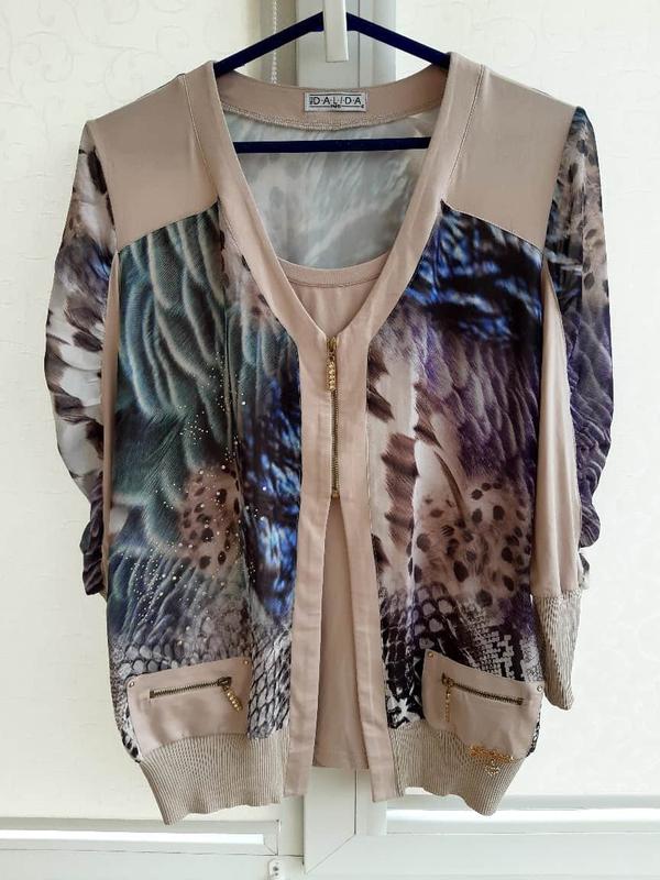 Нова нарядна кофточка, колір бежевий. При потребі надам додаткові фото і заміри. Підійде на розмір XL. Заміри: Довжина по спинці 64 см Ширина під руками 58 см Рукав від плеча 52 см.