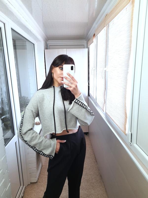 💜 Вкорочене худі з широкими рукавами 💜 Ідеальний стан 👍 💙 Склад: 100% котон. 💙 Розмір L, на М також підійде. Заміри: 🧡 пог - 57см; 🧡 довжина від плеча - 38см; 🧡 рукав від шиї - 75см; 🧡 ширина рукава - 18см.