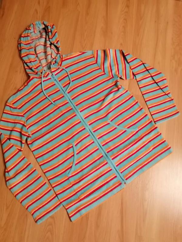 Мягкая, махровая уютная кофточка, длина по средине спинки 65 см, плечи 47 см, рукав 57 см, подмышки 53 см, низ 52 см, разрезы 10 см.