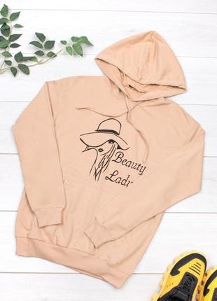 Стильне бежеве худі кофта з капюшоном малюнком принтом дівчина