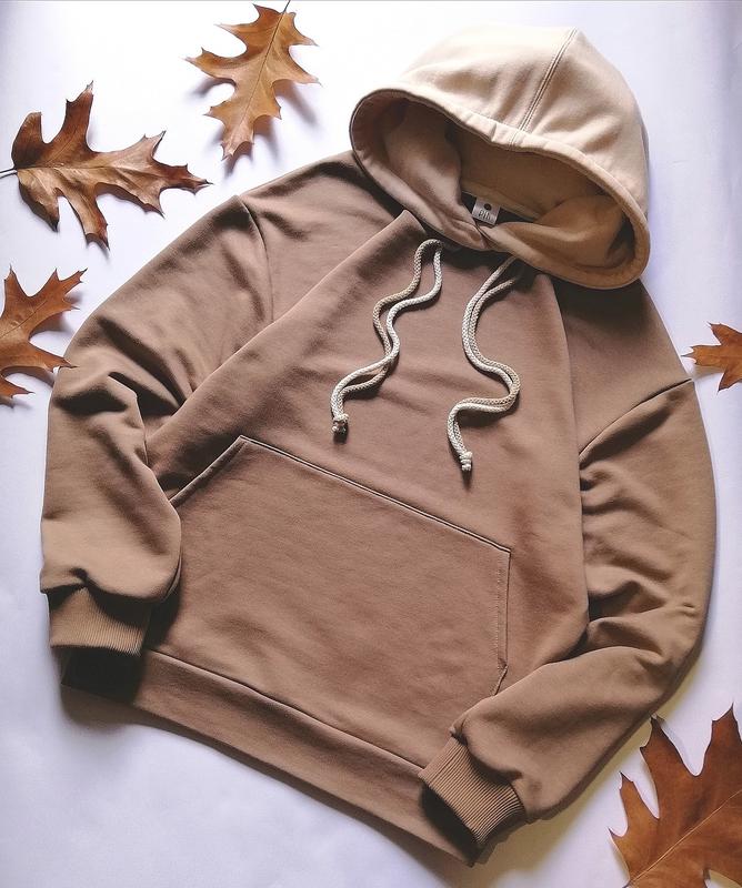 Женское худи оверсайз, размер xs-s Комбинированный цвет, молочный шоколад + беж Ткань трикотажная трехнитка, не вытягиваеся и не кошлатится Замеры: Длина 66см Полуобхват груди 56см Длина рукава от шеи 77см Производитель Украина