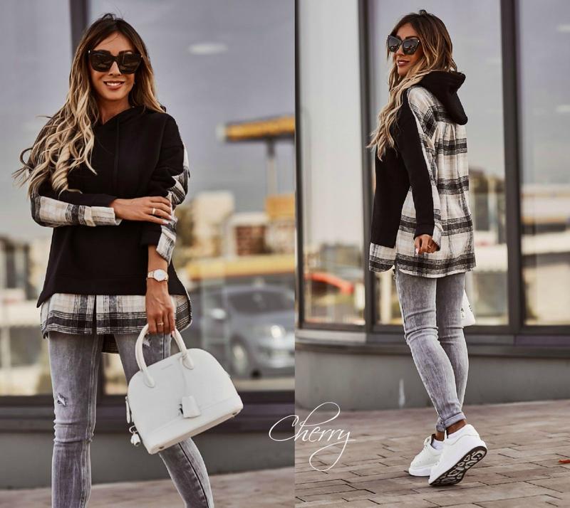 В НАЛИЧИИ 🎄 Тёпленький худи Мод: 338 Цена: 470 грн Ткань: основа трёхнить на флисе + рубашечный кашемир Размер: универсальный 42-46 Цвет: черный Хорошее качество!