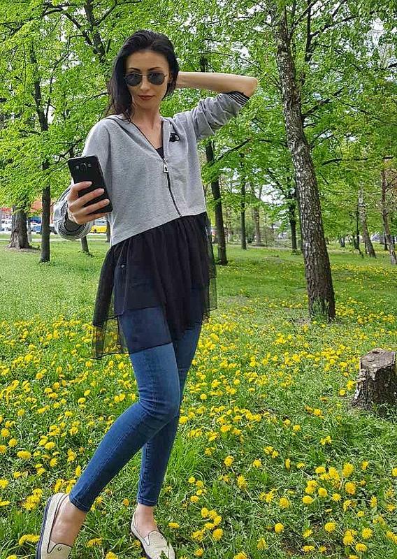 Модна кофта-худі з капюшоном. Зверху на блискавці. 🔹Колір: Сірий, фатиновая спідниця пришита, чорна Під будь-які штани, джинси, легінси, лосини... 🔹Розмір: S, L, XL 🔹Заміри на S (довжина 77см, ОГ 98см, ВІД - 94см) 🔹Заміри на L (довжина 81 см, ОГ - 104см, ВІД - 102) 🔹Заміри на XL (довжина 81см, ОГ-108см, ВІД-106см) Нова пошта, по передоплаті Відправка за рахунок покупця